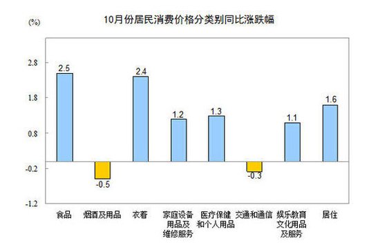 10月CPI同比上涨1.6% 与预测一致