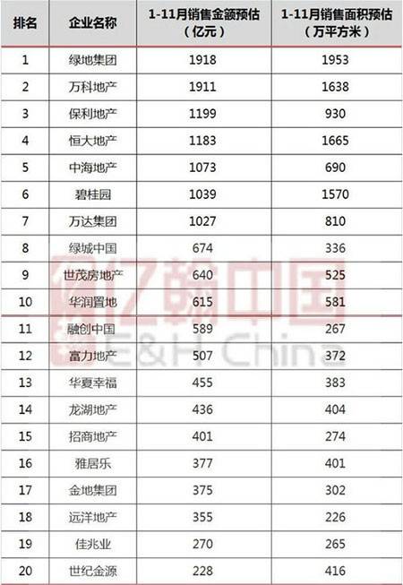 临近年底,2014年房地产销售即将收官,开发商销售业绩完成情况再一次成为业界关注的焦点。有机构预测,截止至11月底,绿地集团以1918亿元的预估销售金额,赶超万科(1911亿),成功登上行业第一的“宝座 ..