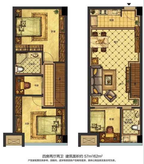 2188元,半个iPhone6都买不到!但是,来茶园公馆,2188元/平米,轻松拥有Loft公馆——百变户型一套!效果图