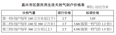 对于不少家庭来说,每天烧饭、炒菜、洗澡都离不开天然气,目前我市建成区范围内管网覆盖率已超过90%。国家发改委要求,2015年底前所有已通气城市均应建立起居民生活用气阶梯式价格制度。现在我市居民生活用天然气执行2.7元/立方米的价格,是从2009年2月1日起执行的。 5月8日,市发改委召开嘉兴市区居民生活用天然气价格调整听证会,就居民生活用气该不该调、怎么调等问题,包括消费者、市人大代表、市政协委员、专家学者、经营者及其他利益相关方在内的17位听证代表进行了观点交锋。 为何要调? 管道天然气存在经营亏损 配气价格应按成本收益定价法确定 据了解,市区的低压到户天然气供应由嘉兴市燃气集团有限公司承担,2014年该公司供气量为1.6亿立方米,其中居民生活用气0.49亿立方米。2015年,供气规模预计达2亿立方米,其中居民生活用气约0.6亿立方米。市区目前执行的生活用天然气价格为2.7元/立方米,而嘉善、平湖、海宁、桐乡居民用气价格为2.9元/立方米。 早在2010年,国家发改委和省物价局就先后提高了天然气价格,浙江省天然气公司门站价格在当年的2月20日和7月15日先后上调,两次合计上调0.41元/立方米。而在2010年11月,嘉兴居民生活用气价格听证会就通过了调价方案,拟加价0.33元/立方米,即从2.7元/立方米调整为3.03元/立方米,但此后由于各种因素调价没有执行。 从嘉兴市价格成本调查监审队成本监审报告可以看到,嘉兴市燃气集团有限公司去年售气量为15266.54万立方米,加权平均单位成本为3.57元/立方米(不含税),而加权平均售气单价为3.37元/立方米(不含税),这意味着管道天然气存在经营亏损。 根据“浙江省物价局关于印发《浙江省天然气价格管理办法(试行)》的通知”中的有关规定,天然气城市管网配气价格应按成本收益定价法确定,在天然气经营企业正常经营情况下,按补偿定价成本并考虑合理利润和法定税金的办法核定。同时其第十和第十一条规定,居民家庭生活用气推行阶梯式价格制度,建立天然气价格上下游联动机制。 要怎么调? 基准销售价格提高0.35元/立方米 实施阶梯式价格制度 这样看来,似乎居民生活用天然气价格调整势在必行,那应该怎么调,定价成本如何核算,定价遵循哪些原则?这是此次听证会的关键所在。 根据此次定价听证方案,天然气销售价格由成本、利润、税金三部分构成,定价成本又包括购进成本和配气成本。 其中购进成本为:省天然气公司门站价格2.42元/立方米(含税)+市天然气管网公司高压输气费0.13元/立方米(含税)=2.55元/立方米(含税),不含税购进成本为2.26元/立方米。 而嘉兴市价格成本调查监审队对市燃气集团有限公司2014年配气成本的监审显示,单位平均配气成本为0.62元/立方米(不含税)。根据这两项测算,市燃气集团有限公司居民生活用天然气单位定价成本为2.88元/立方米(不含税)。 这也意味着,如果居民生活用气基准价格按补偿供气成本的原则,定价成本为2.88元/立方米(不含税),以法定增值税率13%计算,居民生活用气保本基准销售价格为3.25元/立方米(含税)。 听证会上,市物价局相关负责人表示,定价将根据保障居民基本生活,反映资源稀缺程度;适当补偿经营成本,体现公平用气负担;考虑社会承受能力,衔接周边城市价格的原则。此次调价拟提高基准价格,建立天然气价格上下游联动机制和阶梯式价格制度听证方案,具体包含三个方面(见上图,其中阶梯式价格制度具体方案见下方表格)。 当上游居民生活用天然气价格调整时,下游居民生活用天然气价格可按照以下计价方式作相应调整:价格联动额=[计算期平均单位购气成本(含税)-基期平均单位购气成本(含税)]÷(1-管网输配气的损耗率),实施联动后的销售价格=现行价格+价格联动额。天然气管网配气的损耗率暂定为4.85%。 ![]() 有何影响? 91.7%的家庭月均支出最高增加7元 预计拉动月度CPI上升0.05% 居民用天然气价格调整后,将给居民生活以及CPI带来怎样的影响? 按照2014年度市区居民家庭用天然气的实际计算:第一档年用气量240立方米及以下的占91.7%;第二档年用气量240至360立方米的占5.5%;第三档年用气量360立方米以上的占2.8%。 根据市燃气公司提供的2013至2014年居民用户用气情况,户均月用气量14立方米的家庭占81.4%。如果按照听证方案居民生活用气提价0.35元/立方米(含税),则91.7%的家庭月均增加支出最高为7元。 根据市统计部门的资料,2014年嘉兴市区城镇居民人均年可支配收入为37673元,按户籍常住人口每户2.7人测算,每户月均可支配收入为8376.43元,天然气调价增加支出占2014年户均月可支配收入的0.084%(不考虑价格联动和阶梯式气价因素)。 如果与可替代能源比价,则居民生活用天然气价格调整后为3.05元/立方米,相当于瓶装液化气的60%,居民生活用电的53%。居民生活用天然气价格提高0.35元/立方米,预计将拉动月度CPI上升0.05个百分点左右。 方案实施后,持有《嘉兴市城市居民最低生活保障金领取证》、《特困职工优惠证》或《特困残疾人优惠证》的家庭,每月免费使用2立方米天然气。 大家怎么说? 在听证会现场,关于居民用天然气价格是否该调、该怎么调整,听证代表进行了激烈的辩论。 [正方] 嘉兴职业技术学院住处与管理分院副教授何雍泽:我参加过2010年关于居民用天然气价格调整的听证会,如今5年时间过去了,不管是物价水平还是人员工资都在上